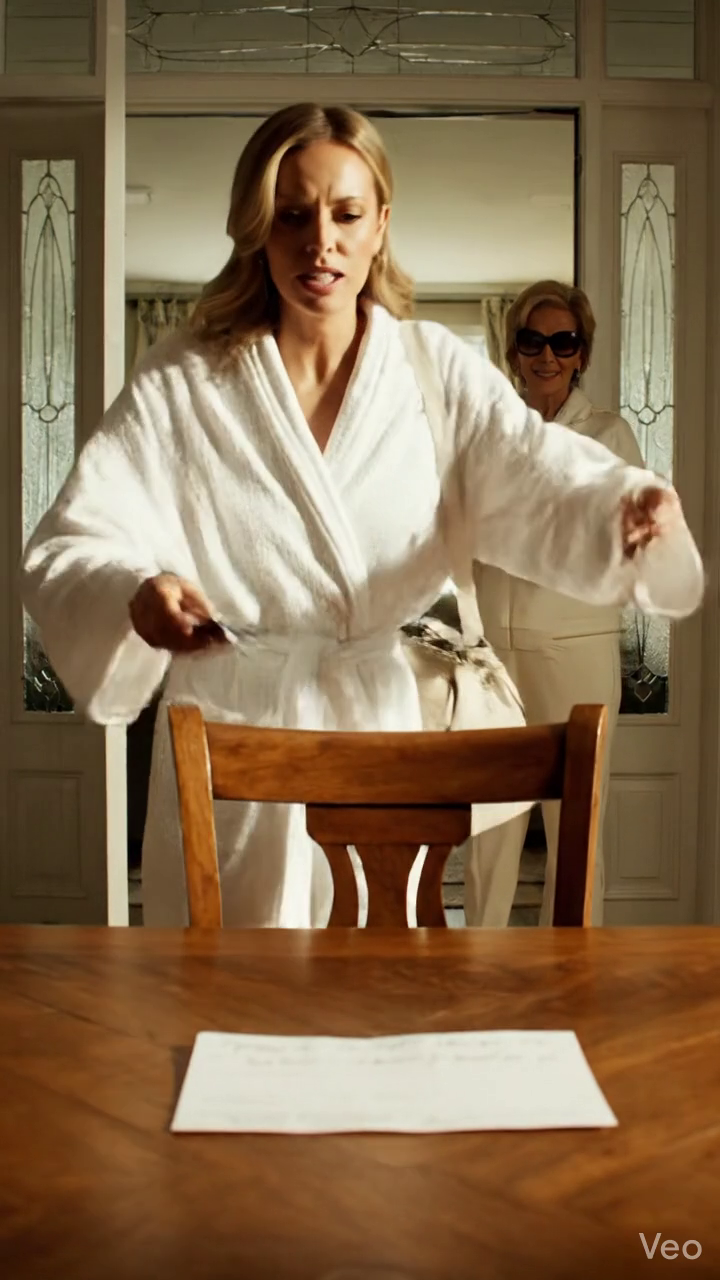 Chloé est entré en premier, se moquant de quelque chose. Linda a suivi, transportant des sacs d’un centre commercial haut de gamme à travers la ville. Le rire s’est arrêté quand ils ont vu la table. Chloé se rapprocha lentement. Elle a pris les deux morceaux de la carte. Ses mains tremblaient.